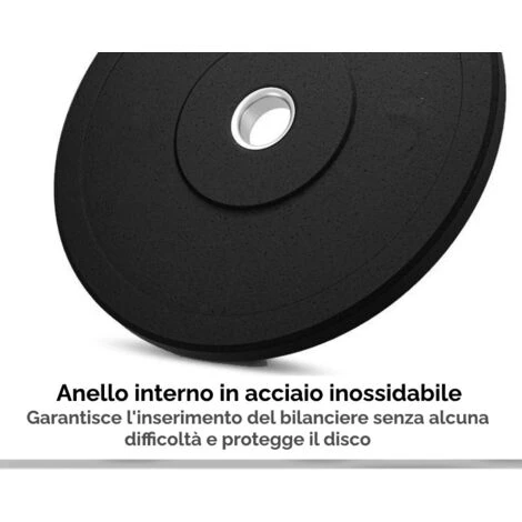 Presentano un foro (anello interno) in acciaio inossidabile per garantire l’inserimento del bilanciere senza alcuna difficoltà. Il diametro da 51 mm è progettato, secondo gli standard dell’International Weightlifting Federation (IMF), per l’uso con bilancieri e manubri di tipo olimpico e barre curve EZ, oltre che con racks, panche multifunzione e tutte le altre attrezzature professionali che supportano lo standard olimpico