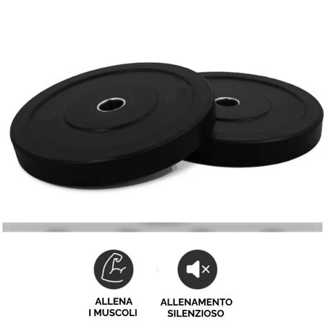 Bumper realizzati in gomma flessibile per evitare danni causati da cadute sul pavimento e per resistere ad un utilizzo ripetuto e costante. La finitura in gomma inoltre aiuta anche a ridurre il rumore dell’impatto, per un allenamento più silenzioso ( possono essere tranquillamente lasciati cadere dall’alto)