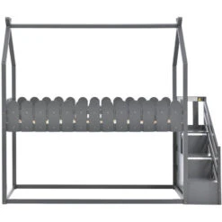 Letto Capanna Per Bambini 90 X 200 Cm Con 3 Gradini E 2 Cassetti, Pino Naturale – Grigio
