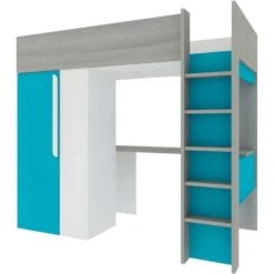 Letto A Soppalco 90 X 200 Cm Con Armadio E Scrivania Blu E Bianco – NICOLAS