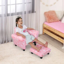 HOMCOM Poltroncina Imbottita Per Bambini Con Poggiapiedi Estraibile-Rosa