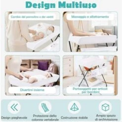 Fasciatoio 3 Strati, Portatile, Fasciatoio Baby Room Con 4 Ruote