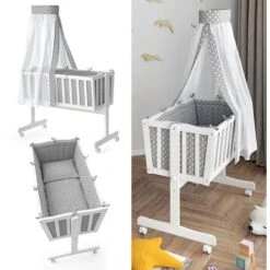 Culla Da Letto Per Neonati Elia 92x55x82 Cm Grigio Scuro Baninni
