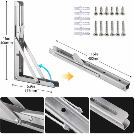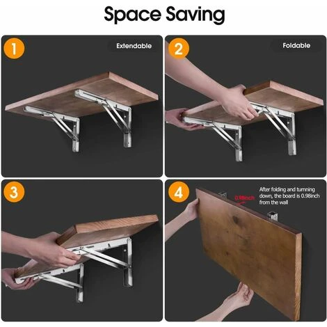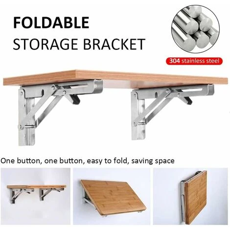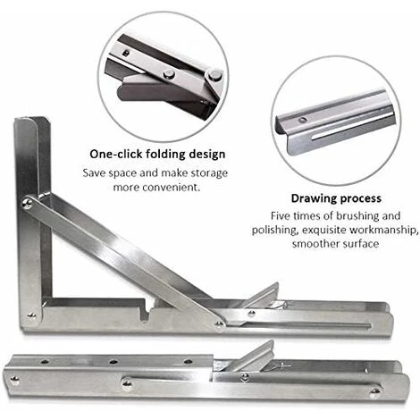 Supporti pieghevoli, robusti acciaio inox, pieghevoli, montaggio a parete, staffa di appoggio, max. 2 x 72 kg di capacità di carico Table di lavoro per lo spazio di lavoro.