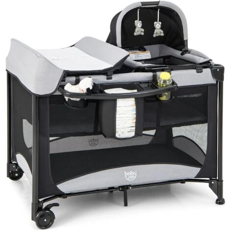 Questo lettino per bambini è dotato di un fasciatoio e di un ampio cestino portaoggetti, che vi aiuteranno moltissimo a cambiare i vestiti e i pannolini dei vostri piccoli. La culla con tettuccio regolabile è perfetta per far fare al bambino una bella dormita, mentre i giocattoli appesi lo intrattengono. Può trasformarsi in un box bambini una volta rimosso il materasso, la culla e il fasciatoio. La rete a 4 lati con altezza adeguata offre una buona visibilità e una protezione a 360°. Inoltre, le 2 ruote bloccabili garantiscono movimenti fluidi. Questo culla può essere piegato in pochi secondi. È inoltre possibile portarlo ovunque grazie alla borsa per il trasporto inclusa.