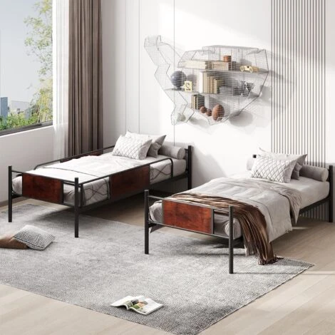 - Stile Industriale: Il letto singolo unisce una struttura nera opaca con pannelli di colore marrone rustico, creando un aspetto industriale che completa il look della stanza. E grazie alle robuste doghe integrate, puoi scegliere se utilizzarlo con o senza rete!