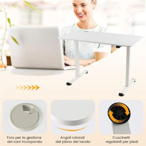 Sei vittima di un lavoro sedentario da molto tempo? Aggiungi questa scrivania elettrica al vostro studio di casa e date il benvenuto a un cambiamento piacevole! Dotata di un motore potente, questa postazione di lavoro può sollevarsi e abbassarsi da 71,5 a 115,5 cm, permettendo a tutti di trovare la posizione ideale. Se si desidera fare qualche esercizio durante il lavoro, è sufficiente premere il pulsante e regolare l’altezza in base alla propria attrezzatura fitness. La scrivania offre ampi spazi per lavorare, leggere o qualsiasi altra attività. Inoltre, la struttura complessiva del tavolino è robusta e durevole, in grado di sostenere fino a 80 kg.