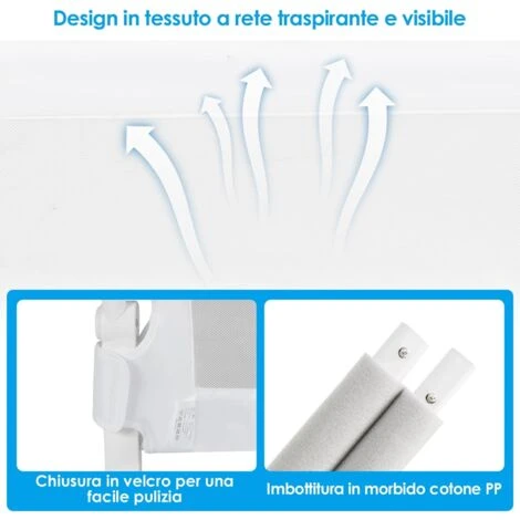 - Ottima protezione per il bambino: Realizzata in ferro di alta qualità e verniciata in bianco, questa sponda dura a lungo e non si arrugginisce. La struttura è resistente e stabile e non oscilla. È alta 42 cm ed evita che il bambino cada dal letto.