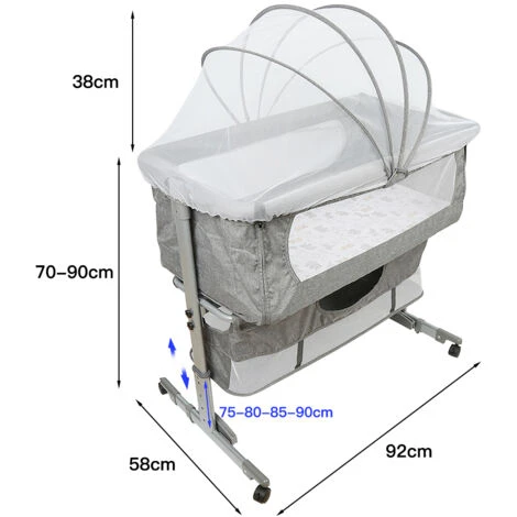 Caratteristiche del prodotto: portatile, con rotelle, lettino da gioco, età applicabile: 0-36 mesi, il lettino ha la funzione di sollevamento dell’altezza e può esserci anche una custodia nella parte inferiore per i prodotti per bambini