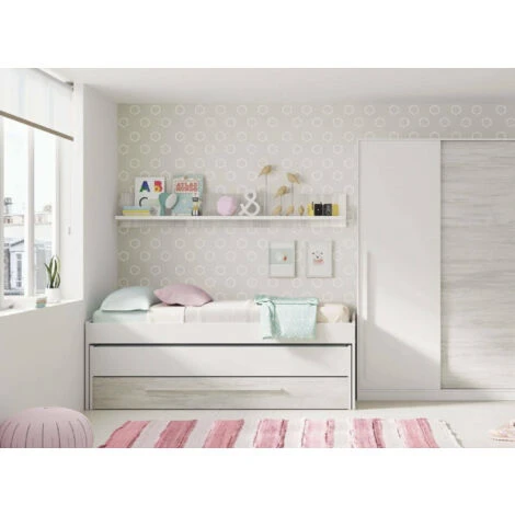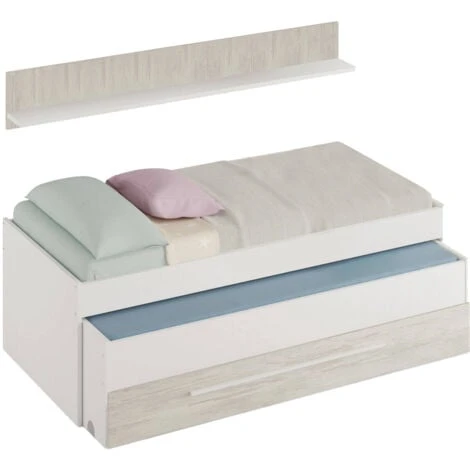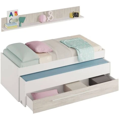 STRUTTURA E UTILIZZO – Struttura per cameretta doppia adatta a due materassi singoli, quello superiore da 90×190 cm e quello inferiore da 90×180 cm – Incluso un secondo letto estraibile, un cassettone e una mensola abbinata – Il giroletto con colorazione bianco vintage è perfetto per l’arredamento di una stanza per bambini o per accogliere gli amici durante un pigiama party – Le reti non sono incluse – L’aggiunta del cassettone utilizzabile come box contenitore, è una soluzione salvaspazio che vi permetterà di riporre comodamente lenzuola, cuscini e piumoni.