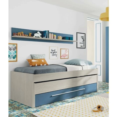 STRUTTURA E UTILIZZO – Struttura per cameretta doppia adatta a due materassi singoli, quello superiore da 90×190 cm e quello inferiore da 90×180 cm – Incluso un secondo letto estraibile, un cassettone e una mensola abbinata – Il giroletto con colorazione bianco vintage e dettagli di colore azzurro è perfetto per l’arredamento di una stanza per bambini o per accogliere gli amici durante un pigiama party – Le reti non sono incluse – L’aggiunta del cassettone utilizzabile come box contenitore, è una soluzione salvaspazio che vi permetterà di riporre comodamente lenzuola, cuscini e piumoni.