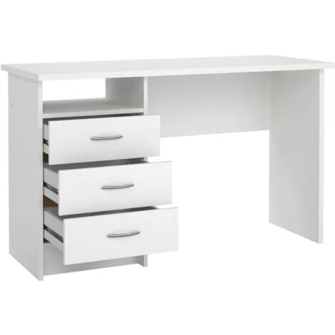 I tre cassetti permettono di avere sempre a portata di mano tutto il necessario al lavoro e il vano che si crea tra i cassetti e il piano della scrivania è perfetto per riporre per esempio il computer.