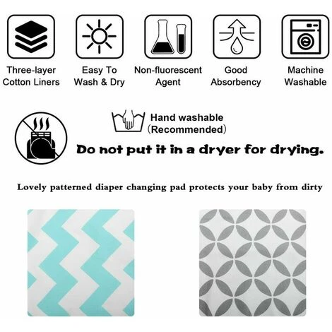 Il fasciatoio portatile è molto leggero e compatto una volta ripiegato. La dimensione del cuscinetto per incontinenza: 13,8 x 23,7 pollici, può funzionare perfettamente come lenzuolo protettivo in culle, divani, veicoli o in qualsiasi altro luogo. Può essere utilizzato su entrambi i lati in tutte le stagioni.