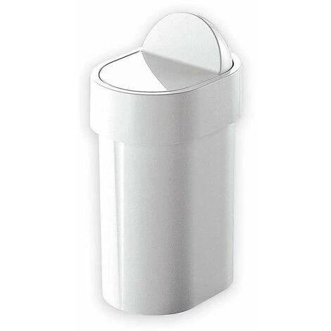 Pattumiera in plastica rigida modello junior 5 lt, con coperchio basculante che oscilla verso l’interno quando viene spinto. colre bianco