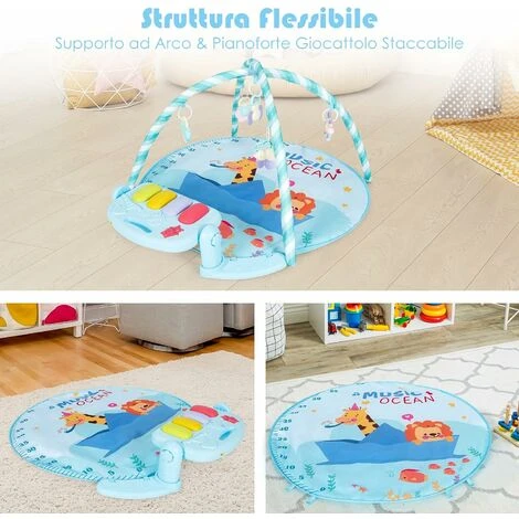 - Il tuo bambino ama giocare sul tappetino? Il nostro tappetino con il pianoforte è una scelta da non perdere. Questo tappetino a 3 strati in tessuto morbido è adatto ai bambini di tutte le età, inclusi i neonati. Gli occhi dei bambini saranno sicuramente attirati dai colori luminosi e dal disegno carino di giraffa e di leone; i muscoli delle braccia e delle gambe saranno rafforzati prendendo i sonagli appesi e dando calci sul pianoforte; la melodia che scorre dolcemente nutri la mente dei bambini. Insomma, questo tappetino promuove lo sviluppo completo dei bambini. Non esitare, compralo subito!