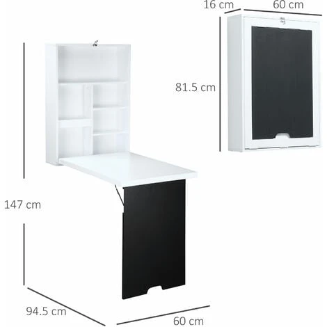 Immagina un mobile in grado di trasformarsi contemporaneamente in una scrivania o in uno scaffale, in base alle tue esigenze. Bene, non devi più sognare! HOMCOM ha creato per te questo pratico tavolo pieghevole da parete, perfetto per avere sempre tutto in ordine occupando pochissimo spazio. Facile da aprire e da chiudere, ti offre una scrivania, uno scaffale con più scompartimenti, e una lavagnetta per le tue annotazioni. Cosa aspetti, semplificati la vita con questo fantastico tavolo a muro!