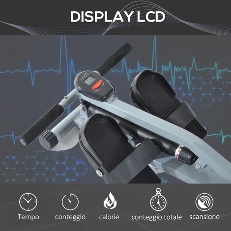 Con questo vogatore professionale non dovrete più uscire per allenarvi in ogni momento che avrete voglia! Lo schermo segnerà il tempo, il numero di vogate, il totale e le calorie bruciate. Fare esercizio regolare con questo vogatore migliorerà la vostra forma fisica e le vostre condizioni di salute.