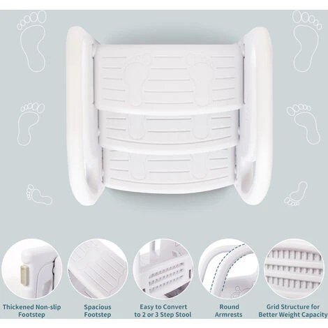【Altezza regolabile 】Solo ruotando leggermente il gradino superiore, la scala a 3 gradini diventa uno o due gradini. Questo design è adatto a diverse altezze, perfetto per i bambini in crescita. Lo consigliamo ai bambini di età compresa tra 1 e 7 anni. Le altezze dei tre gradini sono 13cm, 26cm e 40cm.