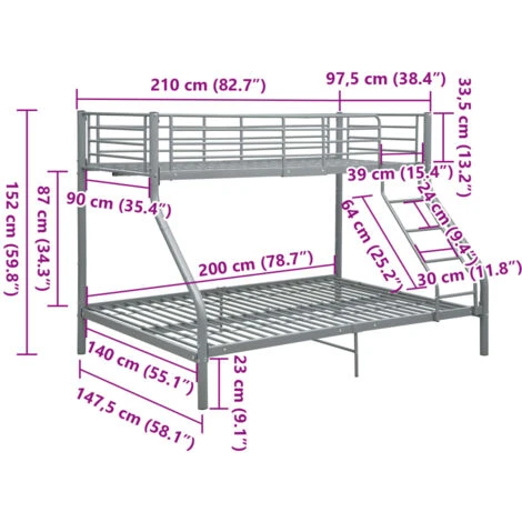 Il nostro letto a castello è realizzato in robusto metallo con verniciatura a polvere che garantisce grande solidità e durata. Progettato pensando alla sicurezza, questo letto a castello comprende una barriera di protezione che si estende su tutta la lunghezza e una robusta scala per salire sul letto superiore. L’intero telaio del letto è realizzato mediante robusti tubi di metallo, caratteristica che rende il prodotto estremamente durevole e adatto all’uso quotidiano. Il letto è facile da montare.