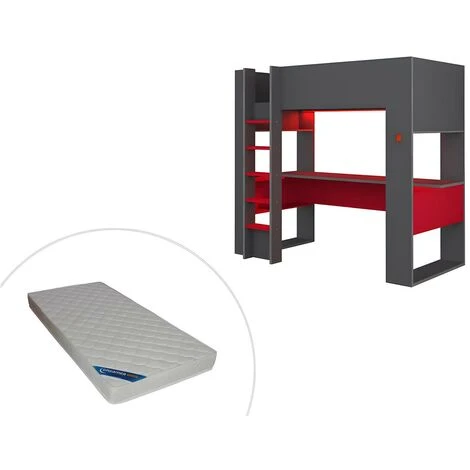 Se sei alla ricerca di un letto a soppalco per il tuo adolescente, scegli la versione gamer del letto NOAH! I colori antracite e rosso ti immergeranno direttamente in un universo gaming degno di un professionista!