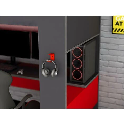 Se sei alla ricerca di un letto a soppalco per il tuo adolescente, scegli la versione gamer del letto NOAH! I colori antracite e rosso ti immergeranno direttamente in un universo gaming degno di un professionista!