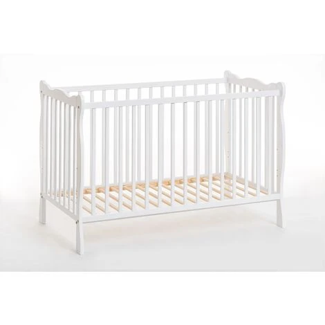 Lettino in legno di pino (proveniente da foreste certificate da FSC) con due altezze di rete. Uno dei lati del letto ha tre sbarre rimovibili. Possono essere rimossi quando il bambino inizia a arrampicarsi per entrare e uscire dal letto. Materasso e biancheria da letto non inclusi. Le testiere di letto modellate sono conforme alla norma europea EN 716-1: 2008 + A1: 2013 e EN 716-2: 2008 + A1: 2013. Conforme alla norma EN 71-3:2013.