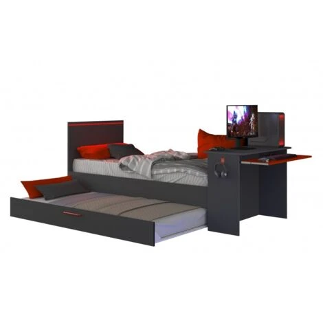 Letto Gamer per un bambino Nero grafite e Rosso con scrivania