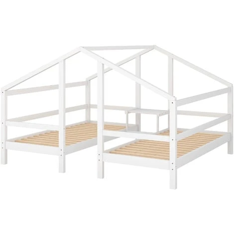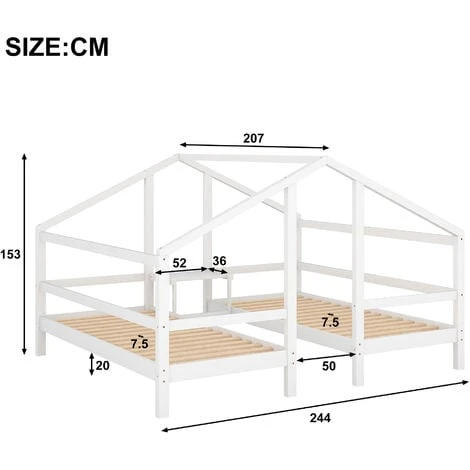 - 【Stile scandinavo e design innovativo】 Questo letto matrimoniale per bambini da 244 x 207 cm (L x P) è composto da due letti singoli sotto lo stesso tetto. Il letto della casa offre due posti letto sicuri e confortevoli, in cui due bambini possono dormire e giocare allo stesso tempo.