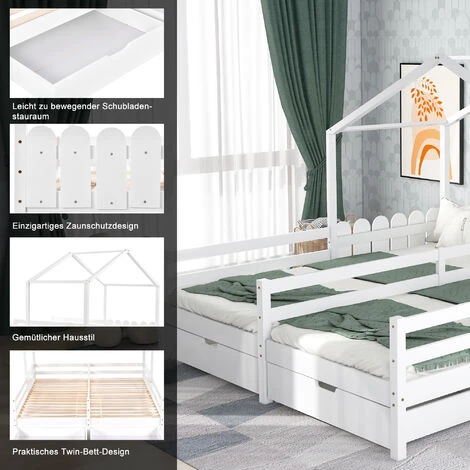 【Unique Split Double Bed Design】La squisita forma del tetto e il design del letto matrimoniale diviso in due letti singoli dalla recinzione centrale rendono il letto più squisito e unico, pratico e bello.