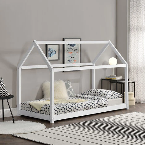 Questo massiccio lettino fatto di legno di pino é il mobile preferito di tutti i bambini per la sua forma di casetta.