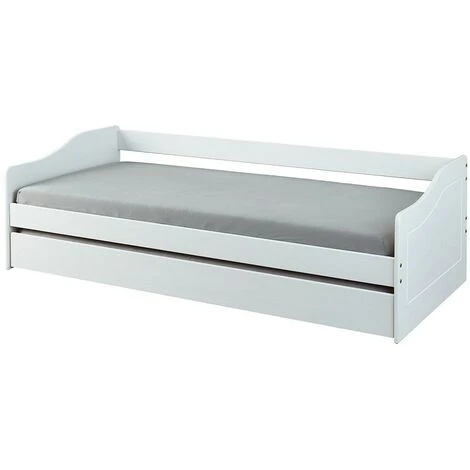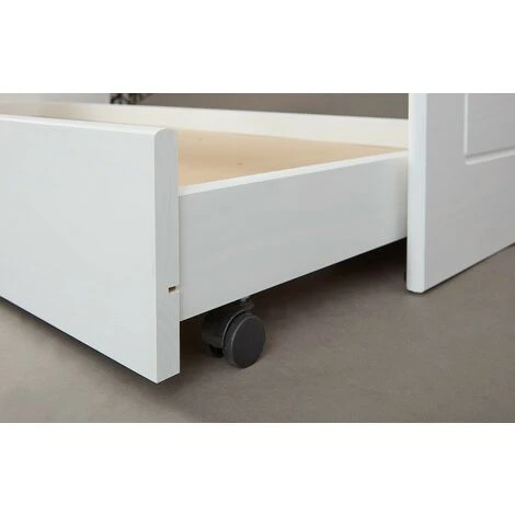DIVANO LETTO CON LETTO SUPERIORE + CASSONE ESTRAIBILE (2�� LETTO). PINO MASSELLO LACCATO BIANCO. DIM. 97x208x62H. PER MATERASSO 90X200. DOGA SUPERIORE ESCLUSA. ARTICOLO IN KIT.