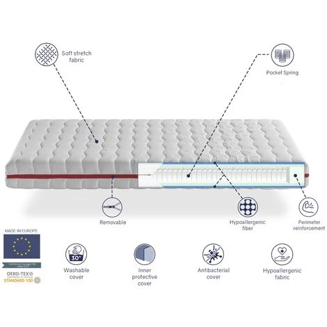 - Questo materasso è stato prodotto con un basso impatto ambientale e secondo i più alti standard di qualità che garantiscono una fabbricazione priva di sostanze nocive.