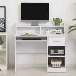 HOMCOM Scrivania Compatta Per Computer In Legno Bianco Con Ripiano Tastiera Estraibile
