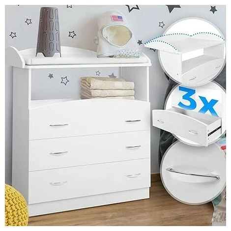 - CARATTERISTICHE: Oltre al piano di fasciatoio (fisso) nella parte superiore, il nostro mobiletto dispone di 3 cassetti spaziosi e 1 scomparto aperto