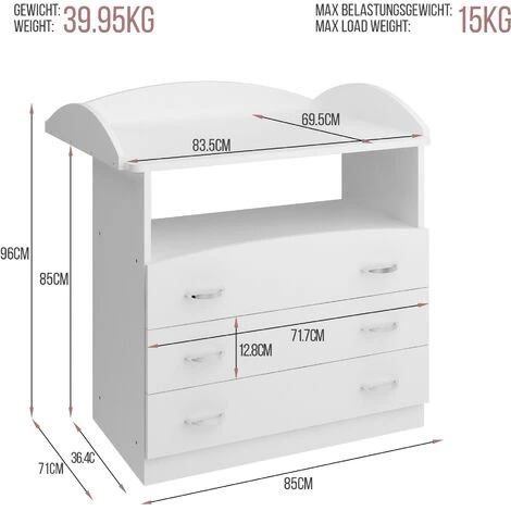 - IMPORTANTE: Assicurarvi di acquistare la cassettiera fasciatoio appropriata tenendo in considerazione che l’area di cambio misura 83,5 x 69,5 cm