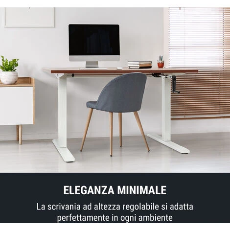 Concedi al tuo corpo una postura sana: con la scrivania Multidesk di oneConcept è facilissimo. Con la nostra standing desk aumenti il rendimento corporeo, i muscoli accorciati si allungano di nuovo e si evitano posizioni sedute afflosciate. Una differenza che sentirai già dopo pochi giorni alla Multidesk quando i dolori alla schiena diminuiranno e il corpo sarà di nuovo elastico. E la cosa migliore: puoi svolgere le tue attività quotidiane un po’ da seduto e un po’ in piedi. Grazie al meccanismo manuale a manovella, il piano del tavolo sale o scende e si può regolare in altezza tra 73 e 123 cm. Per fare in modo che la manovella non stia tra i piedi, è possibile piegarla e nasconderla sotto al piano del tavolo.