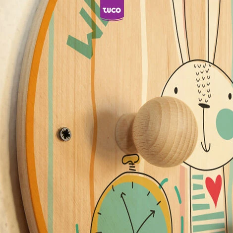 Attaccapanni bambini a tema Alice nel paese delle meraviglie con originali disegni fatti a mano, per arredare la cameretta in modo simpatico e colorato.