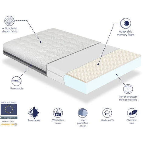 È un materasso che combina i vantaggi del memory foam con la schiuma di alta qualità per offrire il miglior comfort ergonomico e prevenire la plagiocefalia.