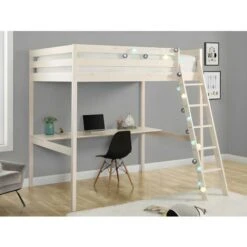Letto A Soppalco Con Scrivania 140×190 Cm In Pino Massello Sbiancato – GEDEON