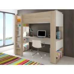 Letto A Soppalco Con Scrivania Integrata 90 X 190 Cm Nero E Rovere – MALICIA