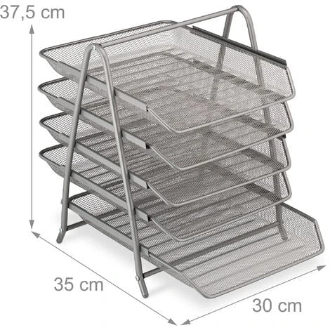 Niente più confusione sulla tua postazione di lavoro! Con questo organizer ti sarà possibile creare più ordine sulla scrivania, sia a casa che in ufficio, e non perderai più di vista i documenti importanti. I 5 scomparti offrono spazio per lettere, documenti e cartelle fino al formato A4. Il design a rete ondulata porta un tocco moderno sulla tua scrivania. Le vaschette sono scorrevoli, molto pratiche per poter trovare subito ciò che ti serve.
