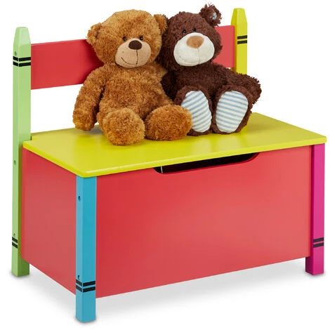 Cassapanca con coperchio– Pratico sedile per la cameretta dei bambini- Un sacco di spazio per riporre giocattoli, peluche, etc.- Assicura l’ordine dai giocattoli- Design colorato a forma di pastello a cera- Adatto a bambini e bambine