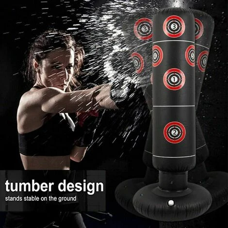 Materiale di alta qualità Il sacco da boxe gonfiabile è realizzato in materiale PVC di alta qualità. Rimbalza rapidamente e senza intoppi. Altezza: 160cm. . Sicurezza e durata Il resistente materiale in PVC garantisce sicurezza e durata. Quindi puoi bruciare calorie e ridurre lo stress. È sicuramente la scelta migliore per il regalo perfetto. . Perfetto ed efficace Migliora la coordinazione e la flessibilità, brucia calorie e riduce lo stress aumentando la flessibilità e la coordinazione occhio-mano. . Facile da installareApri il fondo e riempilo con acqua o sabbia per aggiungere peso e farlo toccare il suolo senza intoppi. Nota: questo sacco da boxe non include accessori gonfiabili. .