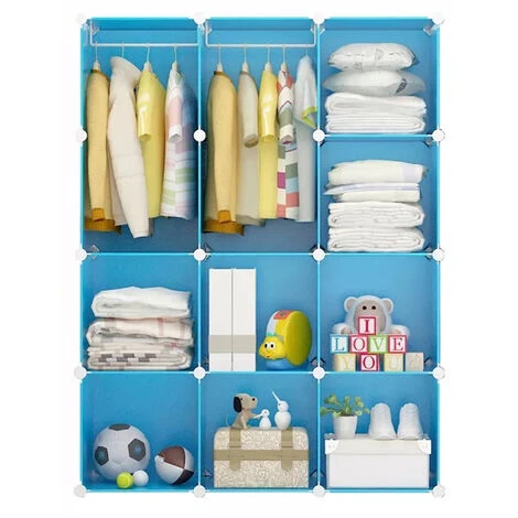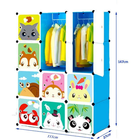 Armadietti per bambini in plastica blu, 12 armadietti a cubi Mobili contenitori per vestiti Scarpe Giocattoli Cartone animato