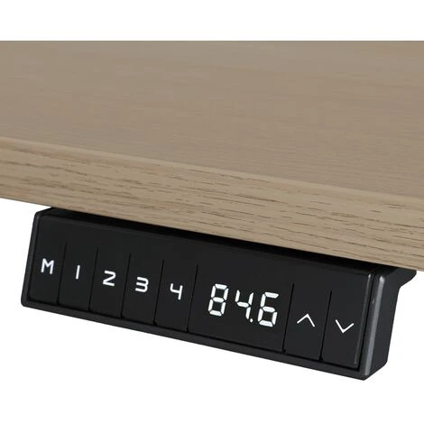 Alternare la posizione seduta e quella in piedi non è mai stato così facile! Utilizzando i tasti freccia, è possibile regolare rapidamente e facilmente la scrivania all’altezza desiderata. Ogni secondo, la scrivania si abbasserà di 2,5 cm fino a un’altezza minima di 72 cm o si alzerà fino a un’altezza massima di 120 cm. L’altezza impostata viene visualizzata sul display digitale. La funzione di memoria permette di memorizzare fino a 4 posizioni. Con una pressione del pulsante la scrivania si regola all’altezza memorizzata.