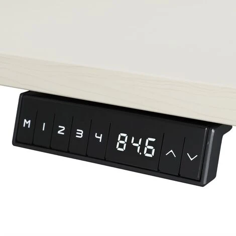Alternare la posizione seduta e quella in piedi non è mai stato così facile! Utilizzando i tasti freccia, è possibile regolare rapidamente e facilmente la scrivania all’altezza desiderata. Ogni secondo, la scrivania si abbasserà di 2,5 cm fino a un’altezza minima di 72 cm o si alzerà fino a un’altezza massima di 120 cm. L’altezza impostata viene visualizzata sul display digitale. La funzione di memoria permette di memorizzare fino a 4 posizioni. Con una pressione del pulsante la scrivania si regola all’altezza memorizzata.