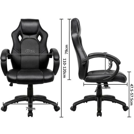 Disegn ergonomico: La curvatura del schienale adatta al corpo, l’altezza totale è 111-121 cm, l’altezza del schienale è 71 cm, l’altezza della seduta è 45-55 cm, rotazione 360 gradi