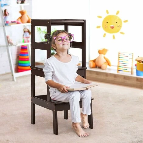 Design 2 in 1: Questo prodotto non è solo uno sgabello, ma anche una scaletta a due gradini. Il tuo bambino puòsedersi sopra per riposare e giocare oppure stare in piedi per prendere gli oggetti in alto, è molto pratico e compattoe non occupa molto spazio.