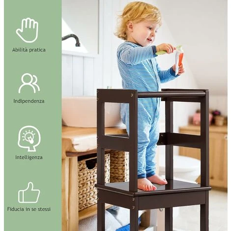 Grande aiuto: Il nostro sgabello può reggere un peso fino a 70 kg, quindi anche gli adulti possono usarlo. Il tuo bambino può “crescere” in altezza stando in piedi su di esso, rendendogli più facile lavarsi le mani, lavarsi i denti e aiutare i suoi genitori nelle faccende domestiche.