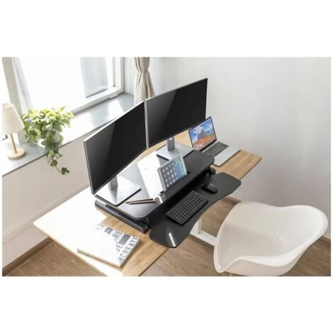 Con questa postazione per pc STAR_SSD_03 ottieni un prodotto funzionale che ti permette di lavorare comodamente. Tramite la molla è possibile regolare l’altezza tra 110 e 505 mm, questo ti permette di lavorare in modo rilassato sia da seduto che da in piedi. Il monitor può essere posizionato ad altezza occhi, riducendo la tensione sul collo e le spalle. Il lavoro al computer sarà più piacevole e rimarrai concentrato più a lungo.
